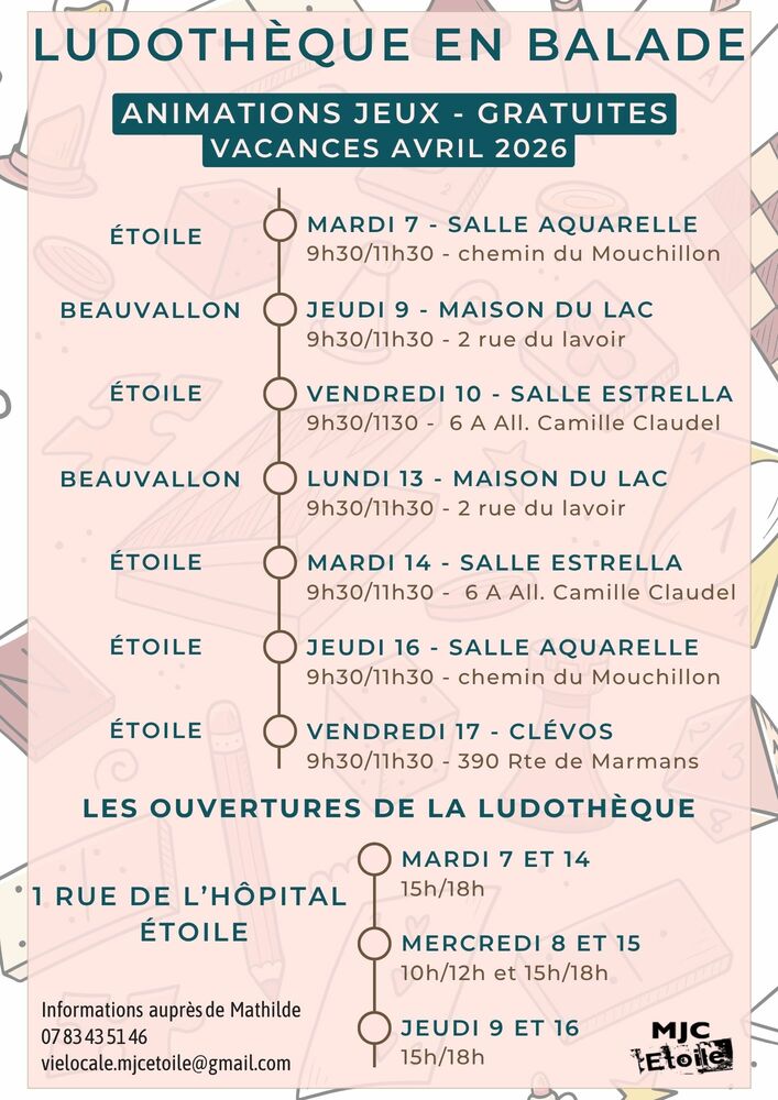 La ludothèque de la MJC d'Etoile vous propose des animations jeux de 9h30 à 11h30 à la salle de la Maison du Lac, 2 rue du Lavoir :